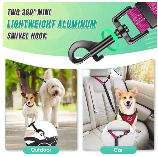 • 1.6Ft Long Dual Dog Leash Attachment - Double Leashes for Training Small to Large Dogs Adjustable Strap, Shock Absorbing Bungee