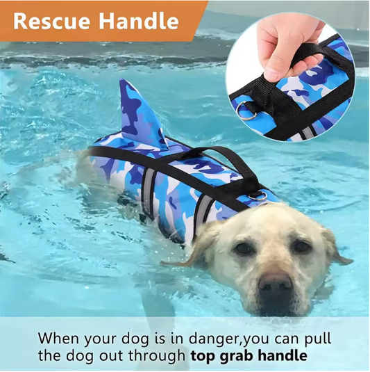 Pet Dog Life Jacket Vest Clothes Life Vest Collar Harness Pet Dog Swimming Summer Swimwear Clothes Camouflage Shark Blue Fuchsia
